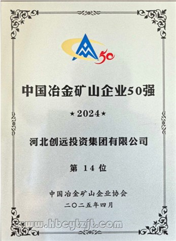 近日,中國冶金礦山企業(yè)協(xié)會(huì)發(fā)布“2024年中國冶金礦山企業(yè)50強(qiáng)”榜單,河北創(chuàng)遠(yuǎn)投資集團(tuán)有限公司憑借卓越綜合實(shí)力位列第14名,展現(xiàn)出強(qiáng)勁的發(fā)展勢頭。